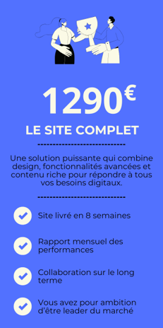 Chez MyLiftWeb, nous croyons que la qualité doit rester accessible. Nos tarifs attractifs sont pensés pour répondre à vos besoins sans compromettre l’excellence de nos services. Que ce soit pour la création de sites web, l’optimisation de votre e-réputation ou des campagnes digitales, nous proposons des solutions performantes adaptées à votre budget. Avec nous, vous bénéficiez d’un accompagnement personnalisé et d’un retour sur investissement optimal, au meilleur prix.